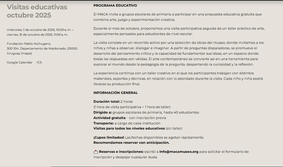 Preparar la salida con entusiasmo. Madrugar mucho ese día, hacer un viaje largo, pintar un cuadro con sus propias manos, aprender a mirar las obras que hay expuestas, tener una charla con el propio Pablo Atchugarry volver con un montón de inspiración e ideas para continuar explorando a través del arte.