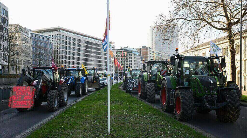 En Bruselas, cientos de tractores y miles de agricultores llegados de toda Europa bloquean el centro de la ciudad desde primera horas de hoy reclamando que no se recorten las ayudas de la PAC y para protestar contra el acuerdo comercial entre la Unión Europea y Mercosur (Brasil, Argentina, Uruguay y Paraguay), que la Comisión Europea quiere firmar el próximo sábado.