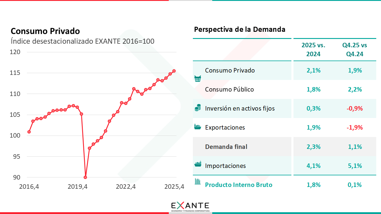 LM: Desde la perspectiva de la demanda, el principal motor justamente fue el consumo privado, que mantuvo un crecimiento firme en la última parte del año y exhibió una expansión de alrededor de 2% en el promedio de 2025.