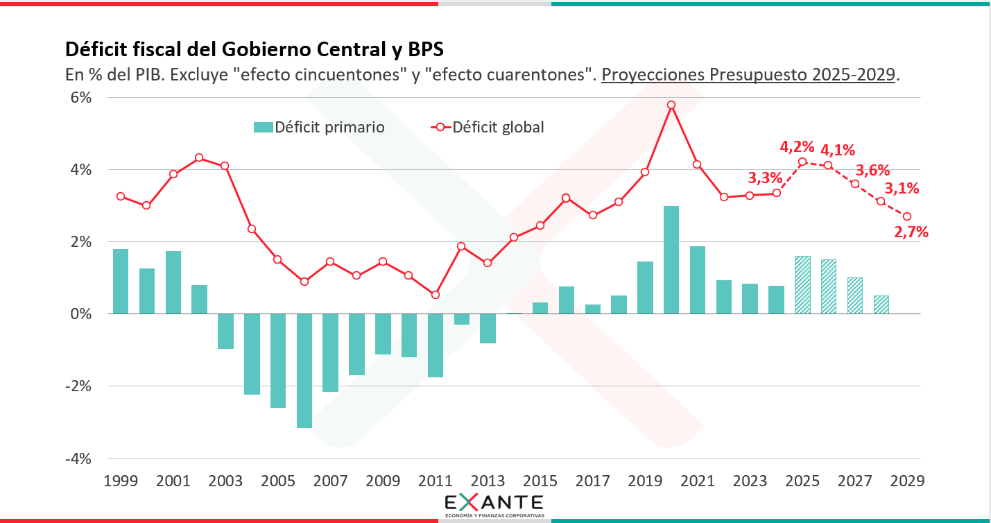 Desde la perspectiva del sector público consolidado, esto implica una proyección de déficit global de 3,1% del PIB para 2029, desde los niveles de más de 4,5% del PIB con los que cerraría este año.