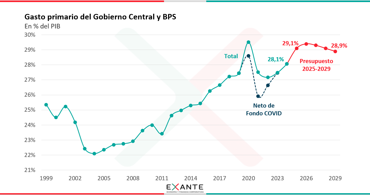 LM: Las autoridades proyectan una relativa estabilidad del gasto público en términos del PIB respecto a los niveles de este año. Sin considerar los intereses, lo que se llama el gasto primario de la administración central se proyecta en 2029 en 28,9% del PIB, frente a una estimación de 29,1% del PIB para el cierre de este año.