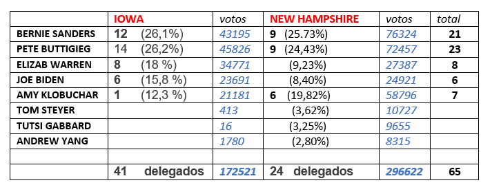 - Un sorprendente tercer lugar para Amy Klobuchar. Parece portar la misma incógnita que Buttigieg. Tanto Nevada como Carolina del Sur nos dejen entrever posibles candidatos firmes ante la tormenta del Supermartes del 3 de marzo. Trump, mientras tanto, espera y triunfa en sus primarias.================================================================