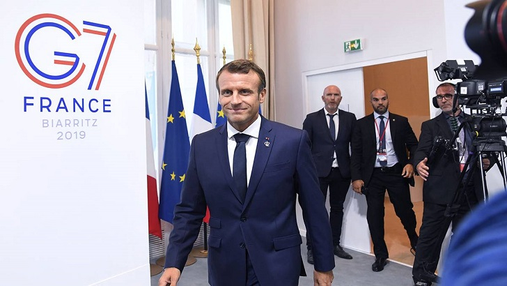 Foto en Home: Macron en el G-7 . Crédito: AFP