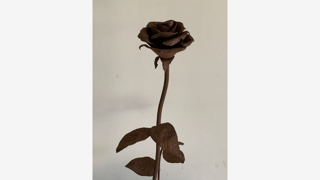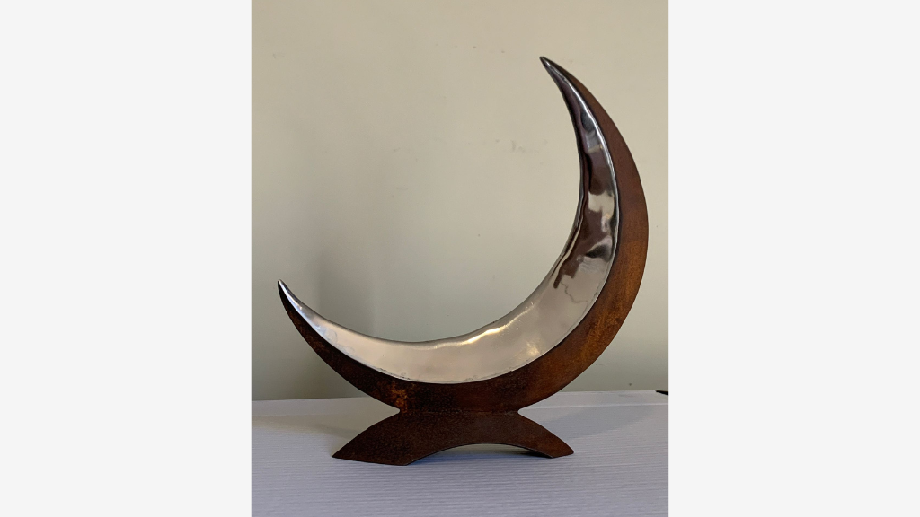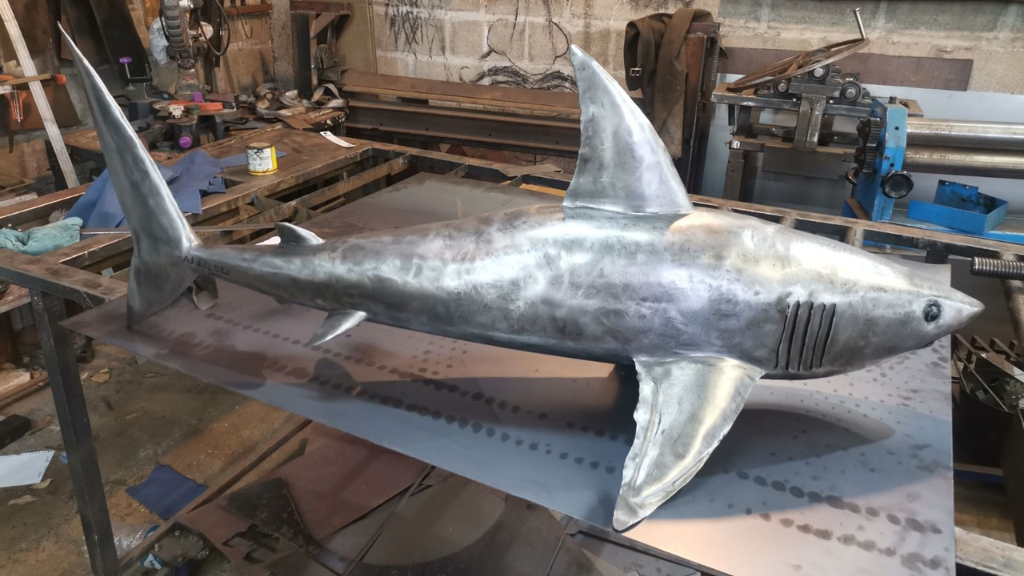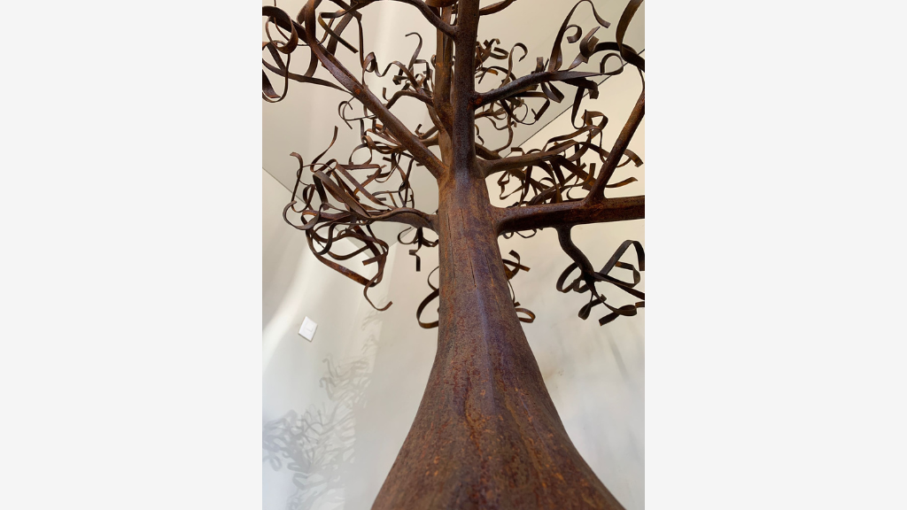 Sus esculturas están elaboradas a mano en acero Corten y acero inoxidable, combinando la resistencia y el tono rojizo del primero con el brillo y la durabilidad del segundo. La soldadura MIG y TIG asegura un acabado pulido y uniones robustas, resaltando la forma y la textura de cada pieza.