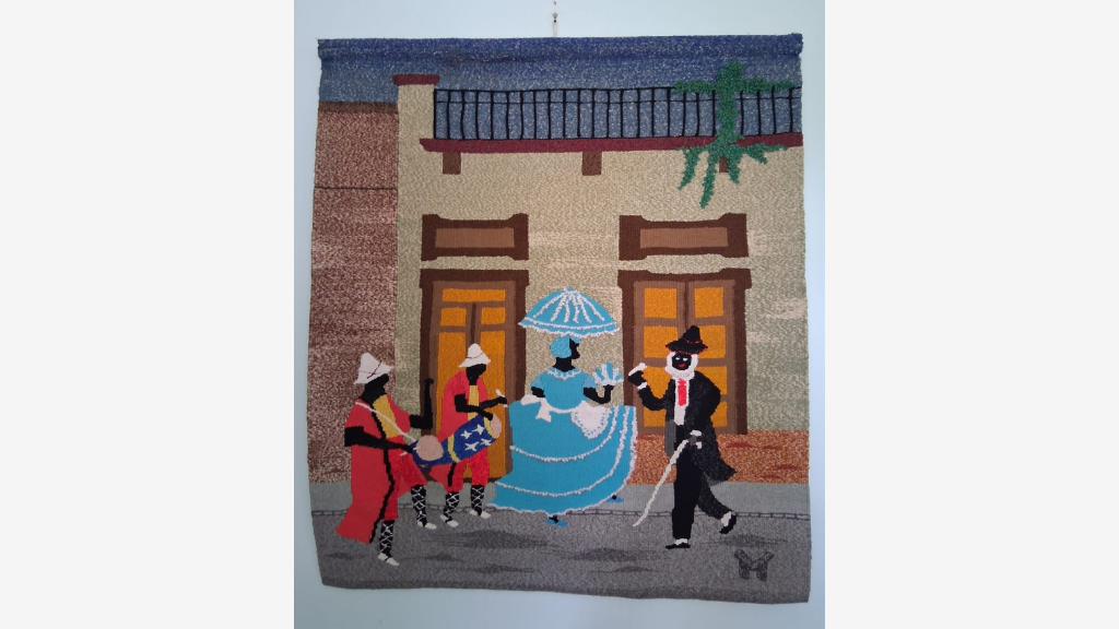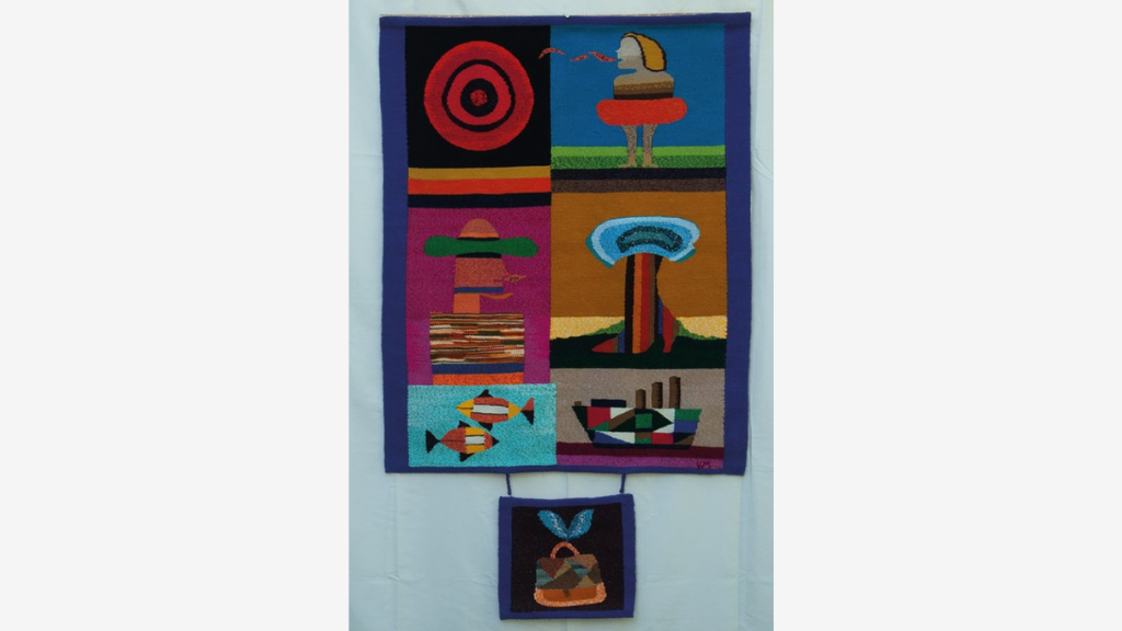 Técnica: Tejido en telar con fibras textiles naturales y artificiales