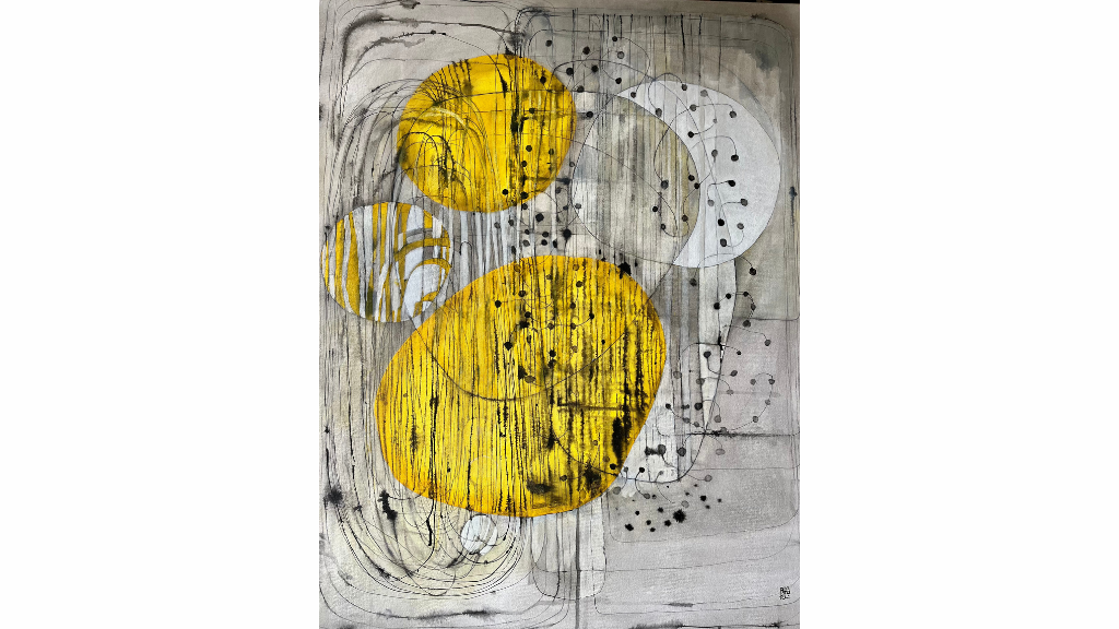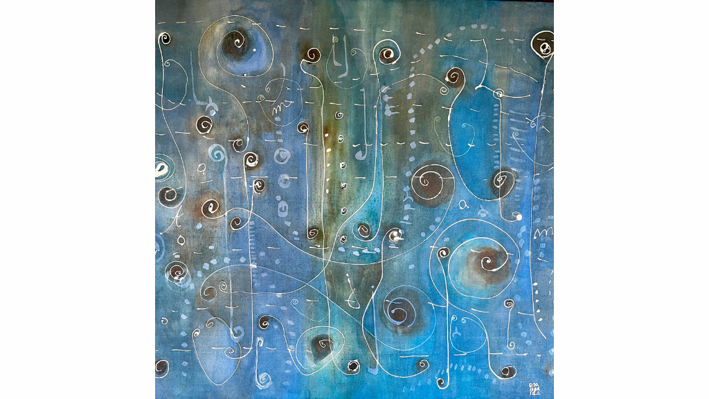 Su obra explora el equilibrio entre orden y caos como parte de un destino que se despliega en cada trazo. Sus universos pictóricos emergen a través del agua, el color y la transparencia, revelando lo que ya estaba latente en un estado de gestación.