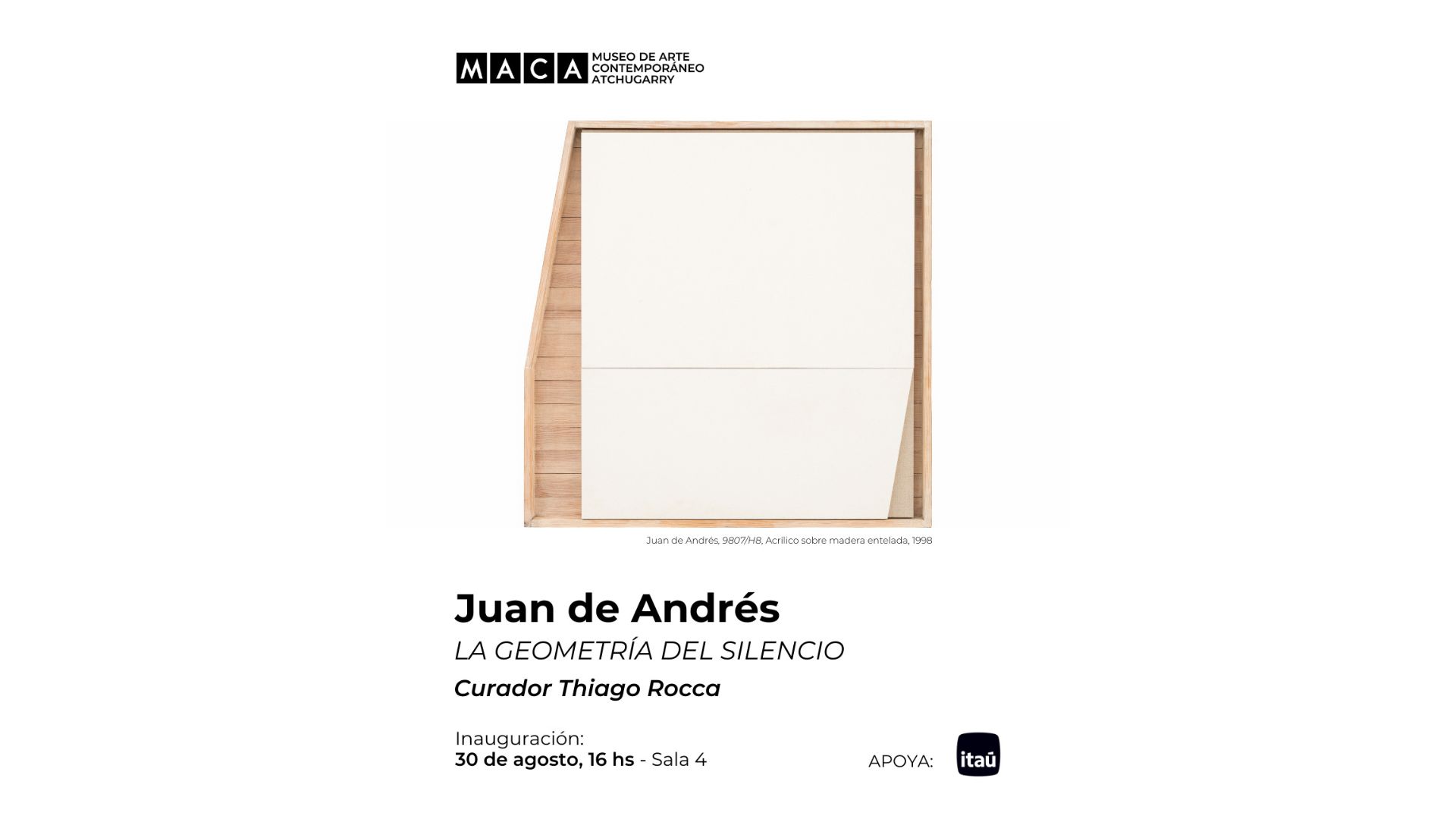 El Museo de Arte Contemporáneo Atchugarry (MACA) expone las obras del artista uruguayo Juan de Andrés, en una muestra que se titula "La geometría del silencio". Es una exposición antológica dedicada a uno de los grandes referentes de la abstracción y el arte constructivo uruguayo. Está curada por Pablo Thiago Rocca y reune obras generadas en mas de cinco décadas de creación y experimentación. La muestra ya esta abierta, en Sala 4 del MACA, y es de entrada libre.