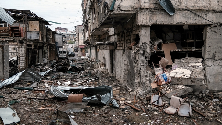- A view shows aftermath of recent shelling during the ongoing fighting between Armenia and Azerbaijan over the breakaway Nagorno-Karabakh region, in the disputed region’s main city of Stepanakert on October 5, 2020. (Photo by Areg Balayan / Armenian Government / AFP) / RESTRICTED TO EDITORIAL USE – MANDATORY CREDIT "AFP PHOTO / Armenian Government / Areg Balayan " – NO MARKETING – NO ADVERTISING CAMPAIGNS – DISTRIBUTED AS A SERVICE TO CLIENTS