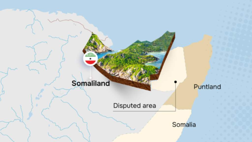 Somalilandia es una región situada en el extremo noroeste de Somalia, en el Cuerno de África, que declaró su independencia unilateral en 1991 tras el colapso del gobierno central somalí. Aunque cuenta con un gobierno propio, fuerzas de seguridad y un sistema político relativamente estable en comparación con el resto de Somalia, no ha sido reconocida oficialmente por la comunidad internacional y su estatus sigue siendo el de un territorio autónomo dentro de Somalia según el derecho internacional.