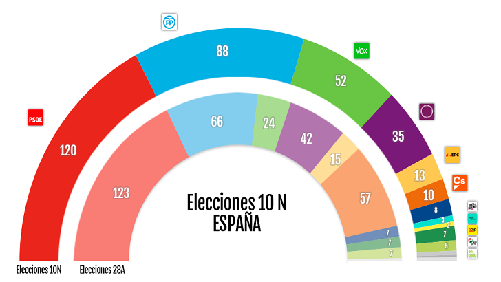 Hoy martes día 3 de diciembre se constituye, una vez más, el Congreso de los Diputados tras las elecciones generales celebradas el pasado 10 de noviembre. Vox ha pasado a ser la tercera fuerza más votada en toda España, mientras que Ciudadanos solamente logró 10 escaños.