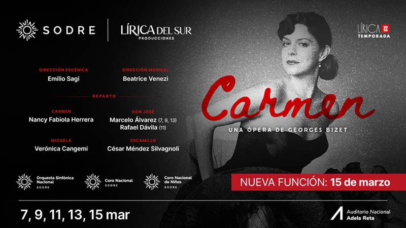 El Sodre y Lírica del Sur presentan Carmen, de Georges Bizet, primera ópera de la Temporada 2026, en una ambiciosa coproducción que reúne a destacadas figuras internacionales junto a 3 elencos estables.