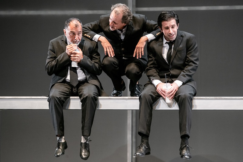 Con una estética contemporánea, la historia de Hamlet se cuenta no solo a través del texto de Shakespeare sino también mediante un lenguaje escénico que integra imágenes de carácter simbólico jugadas físicamente por los actores y recursos musicales corales.