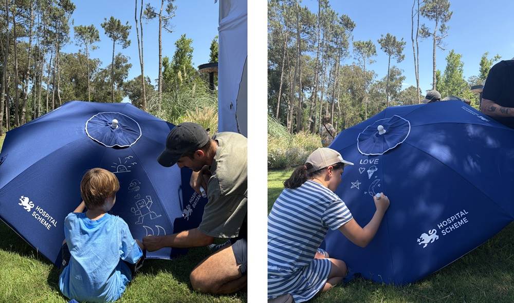 La nota lúdica del encuentro estuvo dada por la posibilidad de, una vez recibidas las “Sombrillas de Bienestar”, intervenirlas con el aporte de un grupo de talentosos artistas convocados especialmente para la ocasión, transformando cada una de ellas en un recuerdo único de las vacaciones.