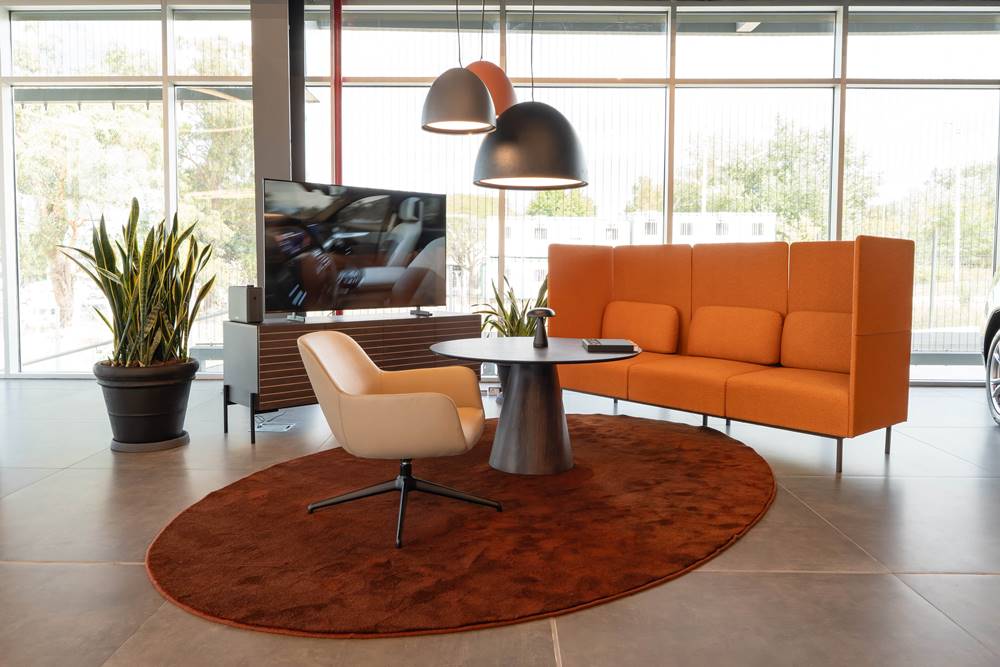 La distribución presenta espacios abiertos, con elementos minimalistas que facilitan un flujo natural a través de su amplia área de exhibición. Allí los clientes pueden apreciar una muestra muy representativa de la línea de productos, con una exhibición espaciosa y rodeada de todos los elementos de confort. Las tres marcas cuentan con espacios claramente delimitados: BMW y MINI en la planta principal mientras que BMW Motorrad se ubica en el piso superior. En cada uno de ellos, el equipo de atención de Magna brinda asistencia en forma personalizada y también digitalizada, aportando toda la información para una elección segura del vehículo que más se adapte a los deseos y necesidades de los clientes. El espacio de entrega de vehículos fue altamente valorado durante la elaboración del proyecto, siendo este un espacio reservado donde los clientes comienzan a vivir la aventura de su nuevo vehículo junto con su familia.